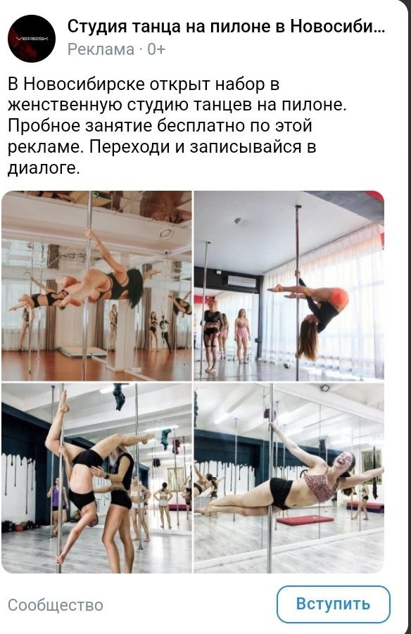 Делюсь новым кейсом по продвижению школы танцев на пилоне в Мигулинском